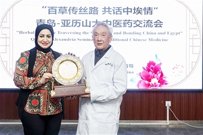 5月29日,埃及亚历山大省媒体团一行4人到青岛市海慈医疗集团参加“百草传丝路 共话中埃情”青岛-亚历山大中医药文化交流会。埃及《解放之花》报董事长玛奈尔·萨米尔以母亲的身份,向海慈医疗集团中医专家表达感激,是青岛中医跨洋送诊送药,经过6个月6个疗程的治疗,帮助她的儿子从生活不能自理的困境中重获新生。