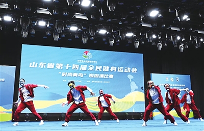 本报5月29日讯 近日,山东省第十四届全民健身运动会啦啦操比赛在城阳第二实验中学举行,来自省内各地市的75支队伍700余名运动员参赛,青岛五十八中“58SDC”街舞社代表学校参赛。队员们凭借原创国风街舞作品《中华苍穹》惊艳亮相,最终获得少年组冠军。