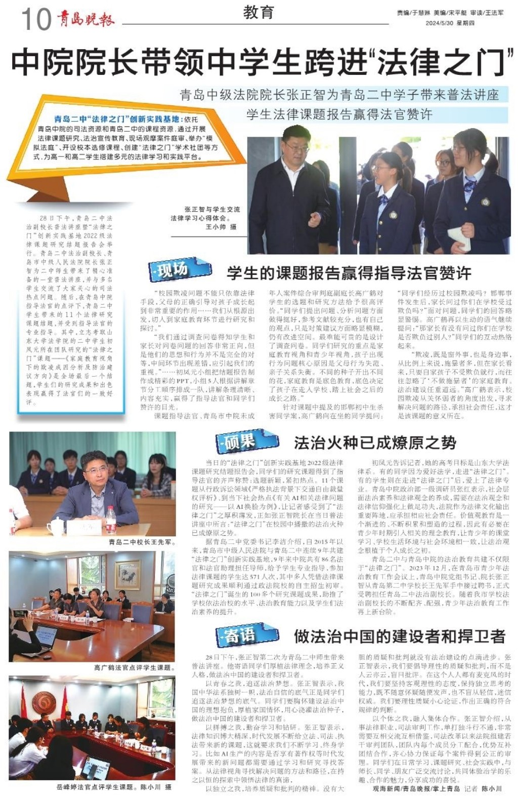 中院院长带领中学生跨进“法律之门”