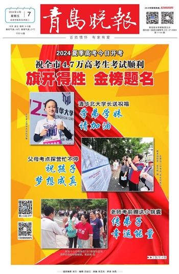 在青岛二中考点,考生和家长看考场信息。栾丕炜 摄
