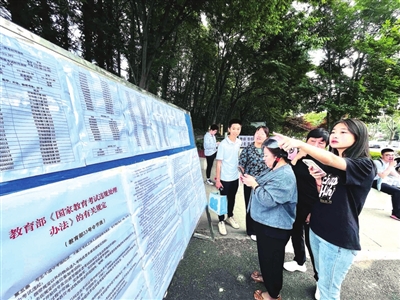 市民李先生拿着儿子的准考证来到二中门口,先是对照考场示意图找到了儿子各科考场的位置,又拿出手机拍摄展板信息,又对考点门口和周边环境进行了录像。像李先生一样替孩子“踩点”的家长不在少数。