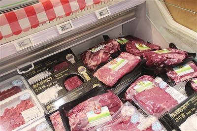 商超的牛排搭档区,多种牛肉出现降价。马妮娜 摄