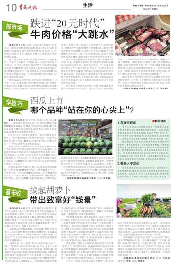 本报6月6日讯 眼下,正值胡萝卜采收季节,素有“沽水菜乡、萝卜小镇”美誉的莱西市店埠镇,3万亩春季胡萝卜迎来了丰收,工人们正紧张有序地采收、装袋、搬运,收购胡萝卜的运输车辆往来穿梭,一派繁忙景象……作为“全国乡村特色产业超十亿元镇”的胡萝卜特色小镇,今年店埠镇春季胡萝卜亩产达到1万斤左右,日收获500多万斤。