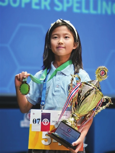 从青岛初赛到总决赛,曲聆溪以辉煌的战绩一路高歌猛进,她凭借对拼词的热爱和词汇量的不断积累,在总决赛中历经十轮淘汰赛,战胜30余名参赛选手,以满分通关的好成绩取得了小初组拼词大赛冠军,把奖杯抱回中国。