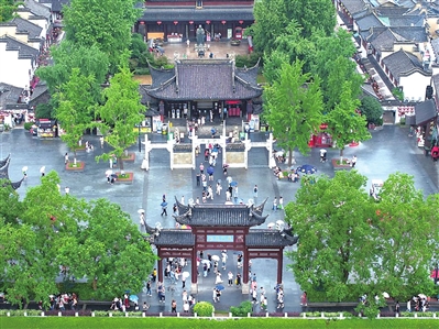 7月14日,游客在南京夫子庙景区游览。 新华社发