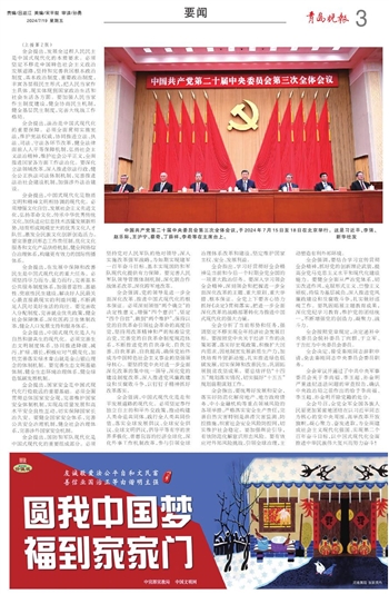 中国共产党第二十届中央委员会第三次全体会议,于2024年7月15日至18日在北京举行。