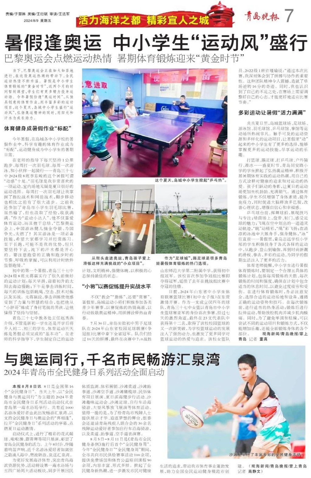 暑假逢奥运 中小学生“运动风”盛行