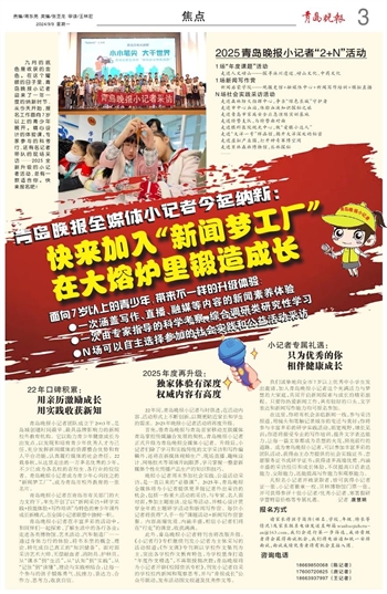 22年间,青岛晚报小记者与时俱进,在活动内容、活动形式上不断创新,以期更贴近家长和学生的需求。2025年晚报小记者活动将再度升级。