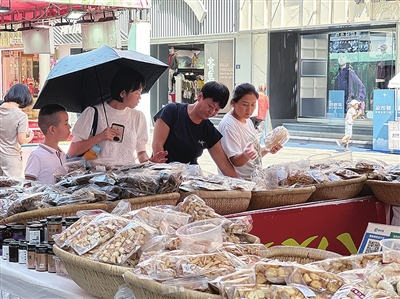 在活动现场,记者看到,台东三路步行街人流如织,布设了“岛城优品、陇蜀味道、药都薯乡、牡丹飘香、雪域珍品、大美新疆、生态博兴”等8大板块展区,展销推介青岛市、甘肃陇南、定西、山东菏泽、新疆、西藏日喀则市桑珠孜区、滨州博兴县等4省7市(县)的240余种特色优质农产品,土豆粉条、橄榄油、沙棘果汁、羊肉卷、鲜百合、哈密瓜、新疆葡萄……瓜果飘香、引人垂涎,还有琳琅满目的特色艺术品,吸引了众多采购商和消费者前来洽谈购买。