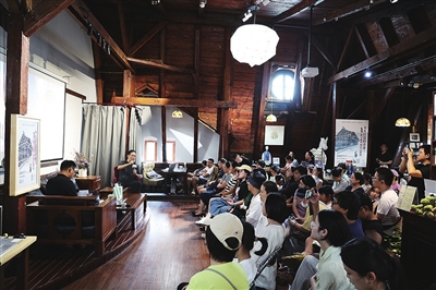 贾珺在良友书坊为岛城读者讲述古建筑故事。
