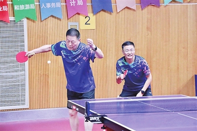 网球单项赛的桂冠争夺中,女单冠军被市税务局安丽波收入囊中,男单冠军归属市政协机关乔大鹏,混双冠军获得者是来自市税务局和市生态环境局联队的张强/鞠丽红,男双冠军则由市广播电视台段振海/王鑫组合轻松拿下。首次增设的匹克球比赛中,市体育局张新/王敏获得混双冠军,市公安局黄峥/束嘉韡摘取男双金牌,市地铁办孔雯/蔡雅文在女双赛场折桂。篮球赛场,市体育局、市退役军人事务局、自然资源部北海局排名前三。