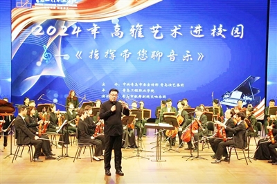 “高雅艺术进校园·指挥带您聊音乐”音乐会日前在青岛工程职业学院举行。青岛市歌舞剧院交响乐团的音乐家呈现了一场充满艺术激情的演出。在指挥家武晔的带领下,乐团各个声部分别展示了乐器特性、艺术特色和代表曲目,让学子们近距离感受交响乐的魅力。