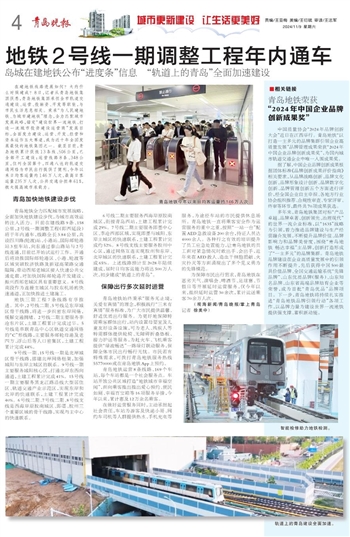 青岛地铁全力匹配城市发展战略,全面加快地铁建设步伐,为城市高效运转注入活力。目前在建线路9条、158公里,2号线一期调整工程(即西延段)将于年内通车,线路全长3.84公里,共设四川路(轮渡)站、小港站、国际邮轮港站3座车站,向东通过泰山路站与2号线连通,目前已开始试运行工作。开通后将助推国际邮轮港区、小港、轮渡等区域突破胶济铁路及新冠高架路交通阻隔,带动西部老城区接入快速公共交通走廊,对加快国际邮轮港开发建设、振兴西部老城区具有重要意义。8号线南段作为连接主城区与胶东机场的快速通道,正加快推进土建施工。