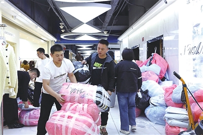 “为了备战双11,我们进了很多羽绒服外套、鹿皮绒外套,都特别好卖,主要发往周边城市,还有省外的新疆、河南、江西等地方。”一家店铺的负责人张琳边帮助顾客试穿边介绍称,近期日发货量超过了2000件。