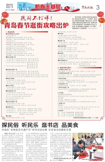 春节期间,亲朋好友相约逛街是许多人喜欢的休闲方式。今年春节,青岛各大商场照例调整了营业时间,为市民准备了精彩纷呈的春节活动,既有年味浓浓的非遗体验,也有漂亮出片的打卡装置,还有经典的儿童剧目。这个春节,到商场去过个热闹年吧!