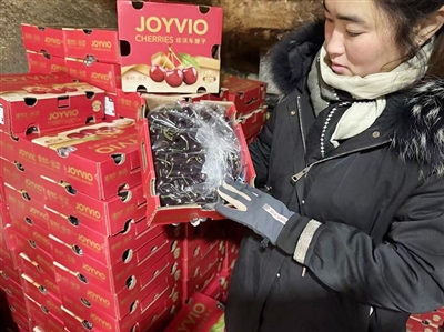 岛城市场上销售的车厘子。