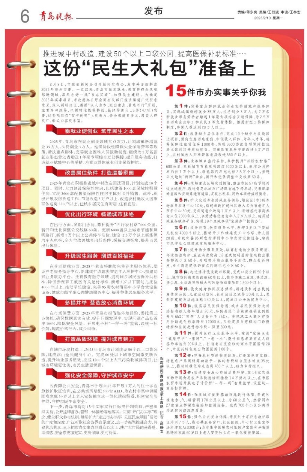 A01 头版 A02 聚焦2025青岛两会 A03 聚焦2025青岛两会 A05 聚焦2025青岛两会 A06 发布 A07 新春走基层 A08 城事
