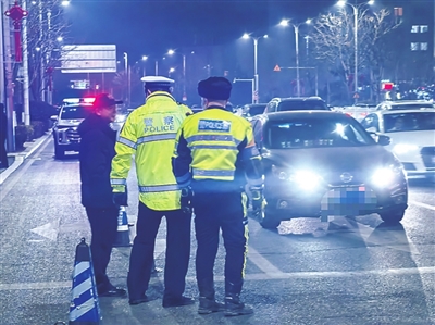 2月下旬,崂山交警开始行动。2月26日晚9时许,记者在青岛二中门前看见,松岭路东侧设置了一排锥形帽,崂山交警风景区中队的铁骑队员驾驶警用摩托来回巡逻,劝离那些长时间停车等待接孩子的家长。晚10时许到10时20分,路口已不再拥堵,很多家长将车停在科大支路上,领着孩子过马路再上车。