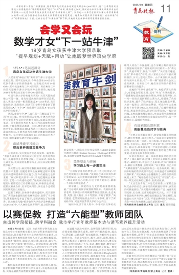 她初中就读于青大附中,中考时以优异的成绩考入青岛二中强基班,这个学霸云集的班里学习氛围特别浓厚。“班里的同学们都有一个‘清北梦’,我就不同了,我是‘牛剑梦’。”吴天楚打趣道,虽然“梦中情校”不同,但大家的主动学习意识同样强烈,学习上还可以互补。由于英语较好,她还作为高中生代表,在“一带一路”能源部长会议上进行演讲。在青岛二中,她在学识和综合素养方面都有很大的提升。
