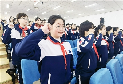 青岛崇德小学少先队员宣读“向雷锋同志学习”宣言。于娜 摄