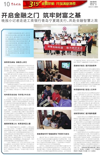 近年来,工商银行青岛市分行始终秉承“金融为民”的服务理念,始终将消费者权益保护作为工作的重中之重,通过建立健全工作机制、创新服务模式、开展特色活动等多措并举,切实维护金融消费者的合法权益。这不仅体现了“金融为民”的初心,更为行业树立了服务标杆,展现了“金融国家队”的责任与担当。