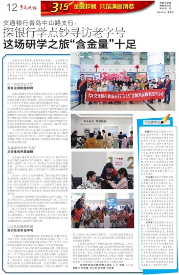 小记者们纷纷表示,通过探访交通银行青岛中山路支行营业大厅,让他们对金融行业有了全新的认识,了解到交通银行如何以客户为中心,坚守“金融为民”的初心,打造温暖、便捷、专业的金融服务,为消费者权益保护与金融知识普及贡献力量。