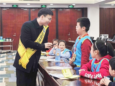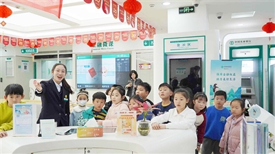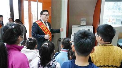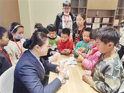 工商银行青岛分行工作人员给小记者普及金融知识。