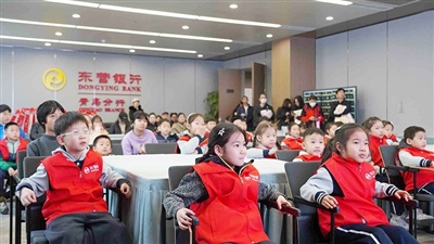 晚报小记者走进东营银行青岛分行。