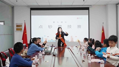 日照银行青岛分行工作人员教小记者花式点钞。