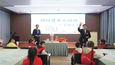 模拟货币游戏贯穿整个学习过程,小记者们在学习金融知识的过程中通过自己的努力,参与问答活动,赚取“营币”,并使用自己的“钱”,参与竞拍游戏,赢取自己喜欢的东西。工作人员用通俗易懂的语言,教他们如何规划零花钱,学会合理配置资产。小记者们听得津津有味,还认真地做着笔记。有的同学说:“以后我要把零花钱存起来,不乱买东西了。”