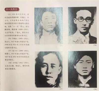 《中共山东历史图集》关于“八一九烈士”的记载。王学忠是王称仁的化名。