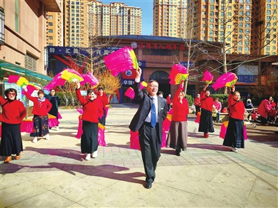 居民王女士的老伴离世后,她经常以泪洗面,无法从悲痛中走出来。子女向社区求助后,工作人员鼓励她走出家门,“车老师新编了舞蹈,队里缺个站C位的,你来试试?”被硬拽到排练场的王女士在车修森的耐心指导下,舞越跳越好,性格越来越开朗,生活变得丰富多彩起来。