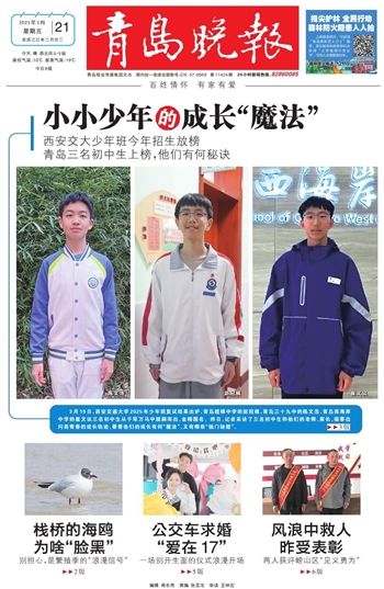 3月19日,西安交通大学2025年少年班复试结果出炉,青岛超银中学的赵冠棋、青岛三十九中的陈文浩、青岛西海岸中学的崔文议三名初中生从千军万马中脱颖而出,金榜题名。昨日,记者采访了三名初中生和他们的老师、家长,描摹出闪亮青春的成长轨迹,看看他们的成长有何“魔法”,又有哪些“独门秘籍”。