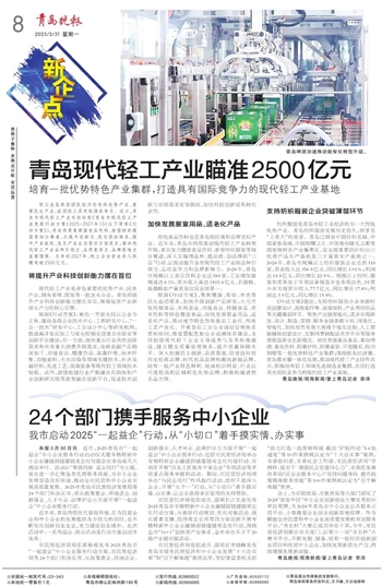 本报3月30日讯 近日,2025青岛市“一起益企”中小企业服务行动启动仪式暨专精特新中小企业融链固链建链常态化对接会在青岛海天大酒店举行。活动以“聚链向新 益企同行”为主题,旨在进一步汇聚各类优质服务资源,为中小企业发展营造良好环境,推动全市民营和中小企业实现高质量发展。2025年青岛市民营经济发展局等24个部门和各区市,将从政策惠企、环境活企、创新强企、人才兴企、法律护企五方面开展“一起益企”中小企业服务行动。