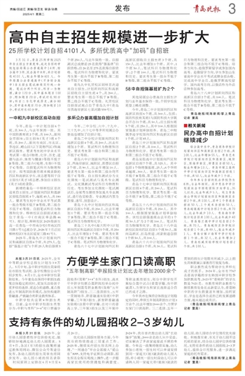 优化幼儿园招生服务方面,今年我市将持续推进三项重点工作。2025年,继续实行招生报名网上办理,“一网通办”平台全部接入“爱山东”APP,支持电子证照自动调取,招生报名全程实现线上操作,进一步提高家长使用的便捷性和满意度。2024年,我市首次推出幼儿园“长幼随学”政策,2000余名幼儿从中受益,切实解决了多孩家庭接送不便的难题。今年这一政策将继续实施,幼儿参加小班统一招生时可以申请安排到同一家庭兄(姐)就读的幼儿园入园;非小班统一招生时段幼儿可以申请转入同一家庭兄弟(姐妹)就读的幼儿园,幼儿园结合学位情况优先接收。积极落实省、市关于幼儿园开设托班的要求,结合幼儿园学位供给情况,支持有条件的幼儿园招收2-3岁幼儿,提供全日托服务,进一步满足家庭的托育需求。