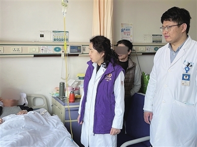 王海萍教授(左一)为患者进行治疗。院方供图