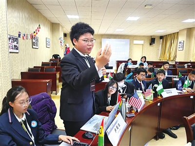 礼贤(青岛)初中生模拟联合国大会上,学子们探讨全球议题。(学校供图)