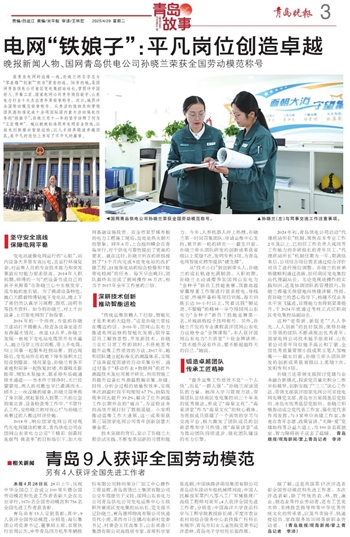 青岛共有13人受到表彰,其中,9人获评全国劳动模范,分别是:海尔集团公司党委书记、董事局主席、首席执行官周云杰,中车青岛四方机车车辆股份有限公司转向架分厂加工中心操作工管益辉,青岛真情巴士集团有限公司公交车驾驶员于义睦,国网山东省电力公司青岛供电公司变电运维中心五级职员兼南区变电集控站站长、党支部书记孙晓兰,青岛德邦物流有限公司快递员代小虎,莱西市日庄镇沟东新村党委书记、村委会主任高维玉,山东省港口集团有限公司高级别专家、首席科学家张连钢,中国铁路济南局集团有限公司青岛动车段动车组机械师刘波,中国人民解放军第四八零八工厂军械修理厂高级工程师刘荣军;4人获评全国先进工作者,分别是:中国海洋大学食品科学与工程学院教授薛长湖、平度市农业农村局综合服务中心农技推广科科长朱瑞华、青岛市妇女儿童医院党委书记泮思林、青岛电子学校校长崔西展。