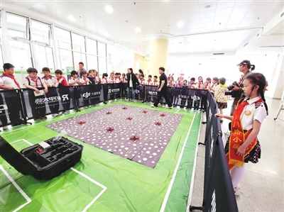 金门路小学学生观摩无人机表演。张译心 摄