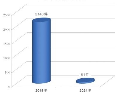 白皮书显示,2015年6月至2025年5月,青岛毒品犯罪案件数量及占全部刑事案件比例呈逐年下降趋势。近十年,青岛两级法院一审审结毒品犯罪案件6903件、8263人。近十年,青岛每年毒品案件数量从2015年的2148件降为2024年的51件,年均降幅32%;毒品案件占全部刑事案件比例从2015年的25.36%降为2024年的0.73%。特别是2020年以来,随着禁毒治理措施积极推进,传统毒品犯罪链条被有效切断,毒品犯罪案件数量大幅下降。