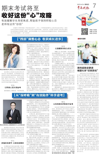 青岛为明学校心理健康教育中心主任蔡永峰表示,期末考试不仅是知识的比拼,更是心理的考验。希望学生们能够运用这些心理调适方法,将压力转化为动力,在考场上取得理想成绩。