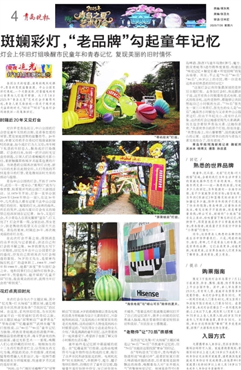致童年,忆从前。走在“忆光集·灯火纳福”区域,会看到我们当年生活中常见的家庭电器和恋恋不舍的美味。利勃海尔两兄弟——这一熟悉的画面,勾起多少人的回忆,当年能拥有一台海尔冰箱,是不少家庭努力的目标;海信电视,当年的《西游记》和蓝精灵的动画片不知播过多少遍,陪伴当年的孩子们度过了快乐的假期;青岛啤酒,泛着快乐的泡沫,喝完后瓶子不能扔掉,而是要留着卖钱;崂山可乐,甜甜的“小泡泡”在舌尖上滚动,给味蕾留下难忘的记忆;钙奶饼干,那简直就是孩子日常最美的零食;青岛脂渣,放在篮子里吊在空中防备“小馋猫”们偷吃……