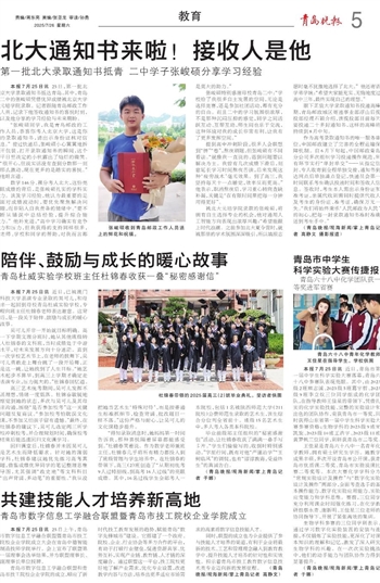 本报7月25日讯 近日,已被澳门科技大学表演专业录取的吴可儿,和母亲一起回到母校青岛杜威实验学校,专程向班主任杜锦春老师表达谢意。这背后,是一段关于陪伴、鼓励与成长的暖心故事。