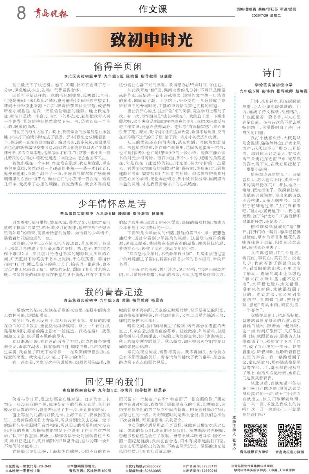 A01 头版 A02 焦点 A03 2025年青岛之夏 艺术灯会 A04 相约金沙滩 醉美西海岸 A05 人物故事 A06 乡村振兴齐鲁样板 A07 综合 A08 作文课