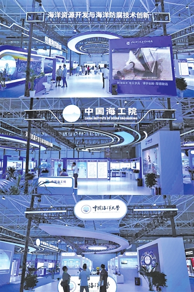 海洋科技装备展区集中展示了深海探测、深潜科考、海洋装备与工程技术、海洋资源勘探与开发、海洋人工智能、海洋应急救援、深海养殖等领域前沿科技成果。