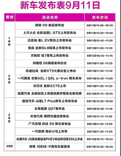 10日,青岛秋季国际车展的展位图正式出炉,想要观展市民请收藏。此次车展,1号馆有一汽丰田、iCAR、别克、上汽大众、林肯、比亚迪、腾势、福特纵横、方程豹、长安福特、维努斯商务;2号馆有奔驰、AMG、EO、迈巴赫、MINI、理想、上汽奥迪、智己、宝马、凯迪拉克、一汽奥迪、沃尔沃、阿维塔、岚图、鸿蒙智行;3号馆有MG、捷途、捷途山海、捷途纵横、深蓝汽车、长安启源、一汽奔腾、上汽通用五菱、卡驰定制、广汽传祺、吉利汽车、吉利银河、长安汽车、长城汽车( 哈弗长城炮坦克欧拉魏牌)、美德之星商务房车、北京越野、宝骏汽车、长安马自达、广汽埃安、东风纳米、东风风神、一汽-大众;4号馆有广汽吴铂、极石、小米、乐道、小鹏汽车、零跑、罗伦士、奇瑞汽车、奇瑞风云、东风日产、特斯拉、极氪、smart、一汽红旗、领克、极狐、东风猛士、广汽本田、ID.与众、蓝电;5号馆有商务奔驰、玛莎拉蒂、Jeep、阿尔法罗密欧、蔚来汽车、大疆无人机行业应用;南A广场有东风本田。
