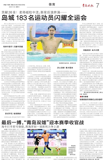 全运会上的一枚枚金牌,是青岛体育健儿汗水与拼搏的结晶,更是青岛体育厚积薄发的见证。从“游泳之乡”“田径之乡”到“柔道名城”“帆船之都”,扎实的人才根基与城市体育精神交相辉映。青岛正以全运赛场为窗口,向世界展示一张闪亮的体育强市“金名片”。