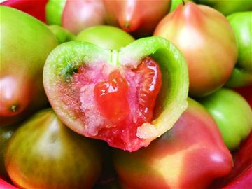 “娄敬庵西红柿独有青皮、瓤红、汁多、甘甜等特点,清润鲜美、酸甜适中,受到各地市民的青睐,成为远近闻名的特产。 ”刁涛说,娄敬庵西红柿全部采用无公害种植,不催熟,不点药,肥料也是正规的有机肥,西红柿吃起来口感特别好,尤其适合当水果生吃。