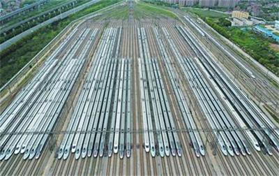 4月6日,武汉动车段高铁动车组整装待发(无人机照片)。