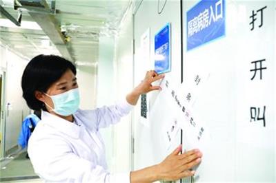 4月9日,医护人员在最后一个关闭的普通病区入口处贴封条。